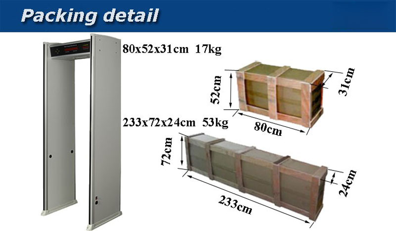 3. Alarms methods: Sound &Visual Alarm. It will show the location of the forbidden metal hidden in human body such as weapon and knives exactly with the Corresponding height LED indicators in both side door panel.